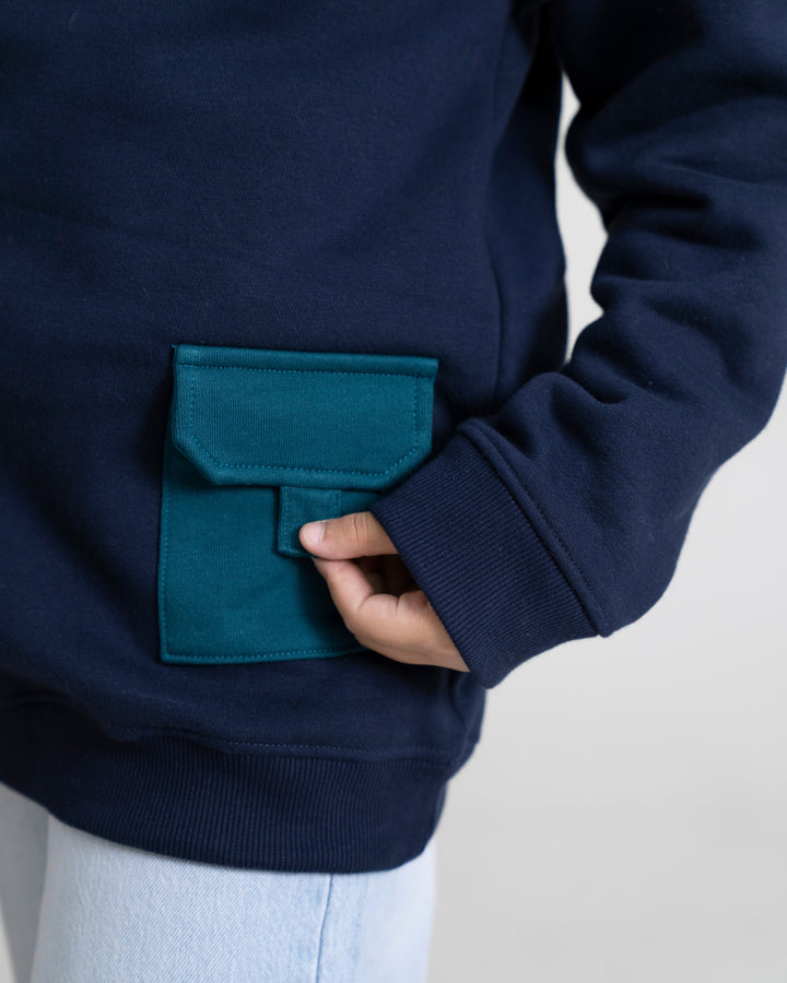 Anchor your winter style with the Dock Pocket Sweatshirt, designed in deep navy with a bold teal utility pocket for a modern twist. Made from premium winter fleece (80% cotton, 20% polyester), it blends softness, structure, and function — giving you warmth with an edge.