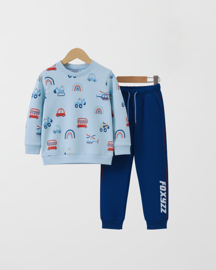 The sky blue printed sweatshirt, with its regular fit, pairs effortlessly with royal blue trousers, both crafted from a durable and cozy LSF 60:40 fabric blend. Perfect for casual wear, this outfit ensures your little one stays stylish and comfortable all day. Inspire. Learn. Grow – enjoy a special gift with every purchase!